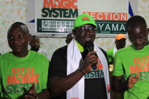 « Kamissoko Aboubakar dit Kamiss l’anglais est la seule personne à qui il faudra désormais passer pour pouvoir avoir des audiences ou d’autres rencontres avec le groupe Magic System. Nous venons partager des bonnes valeurs dans la commune d’Anyama qui sont entre autre éducation, non découragement, bonté, courage. Premier ADN de Magic System, c’est le social. Le groupe a construit des hôpitaux, des écoles et nous voulons que la population rentre dans ce dynamique. Le groupe a assisté également des familles démunies. Je recommande au nouveau président Kamissoko Aboubakar dit Kamiss l’anglais de s’inscrire dans l’idéologie de leadership. », a martelé le président national Fans Magic System, Base Gueye
