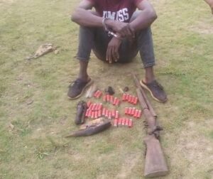 Les perquisitions effectuées dans sa maisonnée, ont permis de saisir un fusil de type calibre 12, des cartouches, des morceaux de singes, de ratels, de crocodiles et de Bongo.