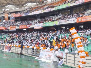 Sous les acclamations nourries de milliers de militants scandant « On veut ADO » et « En 2025, c’est ADO on connaît », Alassane Ouattara a accepté de reconduire son mandat à la tête du RHDP. « Dans un esprit de responsabilité, mais aussi avec tout l’amour que je porte à cette famille politique que nous avons construite, j’accepte de demeurer le président du RHDP », a-t-il déclaré, soulignant que cette décision vise à « consolider la stabilité du parti et préparer l’avenir ».