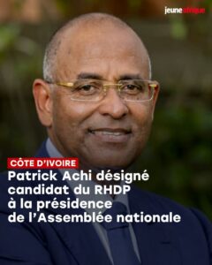 Selon Jeune Afrique, l’ancien Premier ministre a été désigné par Alassane Ouattara pour succéder à Adama Bictogo au perchoir. L’élection doit avoir lieu dans les prochains jours.Selon nos informations, Patrick Achi sera le candidat du Rassemblement des houphouëtistes pour la démocratie et la paix (RHDP) à la présidence de l’Assemblée nationale – l’élection doit avoir lieu dans les prochains jours.